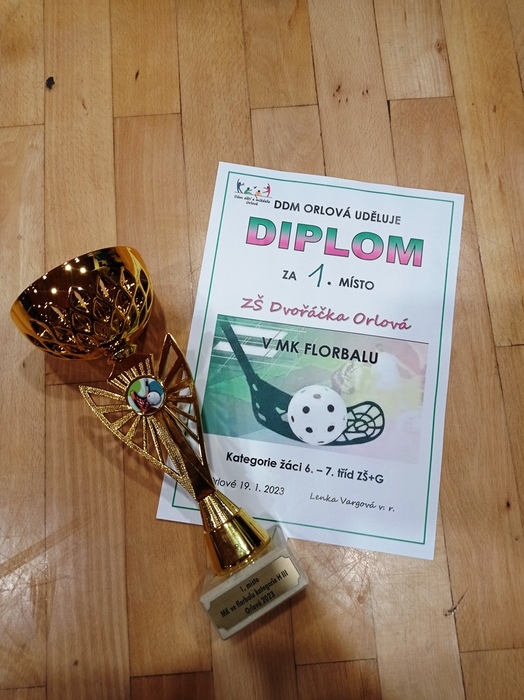 1. místo v městském kole ve florbalu žáků 6. - 7. tříd. Klukům děkujeme za reprezentaci a samozřejmě gratulujeme k úspěchu. Poděkování patří také paní učitelce Šostokové za přípravu družstva na soutěž.