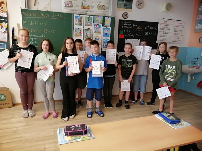Soutěžit se dá v čemkoli – ve zpěvu, v recitaci, v atletice…. Páťáci si změřili své síly v matematice. Komu to nejlépe matematicky myslí? Soutěže se zúčastnilo 15 nejlepších počtářů z áčka, béčka i céčka. A kdo zvítězil? Na prvním místě se umístila Alička  Palovská z 5.A, druhé místo získal Vojta Grygárek z 5.B a třetí místo získal Vítek Unucka z 5.A.