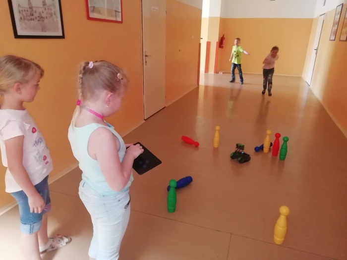Děti se rozdělily do skupinek a prostřídaly se na různých stanovištích. Měly možnost si prohlédnout si a vyzkoušet různé robotické sestavy ovládané počítačem a notebookem. Jednalo se o programovatelné berušky, kterým děti musely správně nastavit trasu, aby dojely na určené místo. Malí roboti zas pomocí ovladače překovávali překážky a děti je směřovaly na vytýčenou trasu.