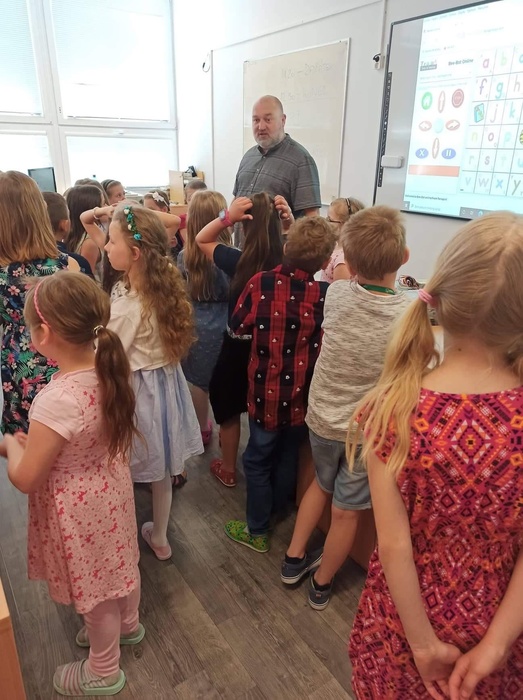 Ukázku nám ochotně poskytl zástupce ředitele Mgr. Martin Czaja a na pomoc si přizval žáky deváté třídy.