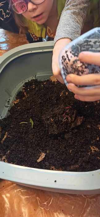 A co od pořízení vermikompostéru očekáváme? Děti budou moci sledovat životní cyklus žížaly od původních jedinců až po jejich potomstvo. Uvědomí si jejich význam a důležitost v přírodě. Žížaly přemění rostlinné zbytky na vermikompost a žížalí čaj. Získáme tak vysoce kvalitní organické hnojivo pro pěstování rostlin v našich venkovních vyvýšených záhonech. Děti se naučí, jak se dá zpracovat bioodpad a co do vermikompostéru patří. Můžeme zde vkládat odkrojky a zbytky ovoce a zeleniny, ohryzky, zelené natě, čajové sáčky, rozdrcené vaječné skořápky, papírové ubrousky, navlhčenou lepenku, zbytky pokojových a venkovních rostlin, suché pečivo na malé kousky. Velké kusy musíme nakrájet na menší kousky, aby je žížaly lépe zpracovaly. Důležité je hlídat vlhkost, teplotu a žížaly nepřekrmovat.