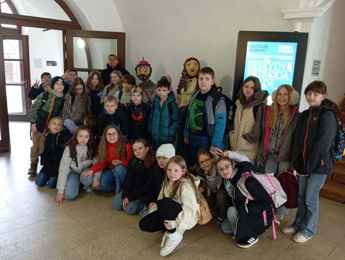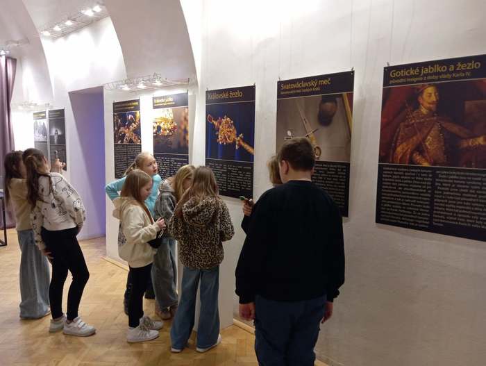 Odpoledne se neslo v duchu historie. Na Frýdeckém zámku žáky čekala unikátní výstava replik českých korunovačních klenotů. Kromě obdivování precizní práce zlatníků se děti dozvěděly zajímavosti o českých králích a bouřlivém období husitských válek.